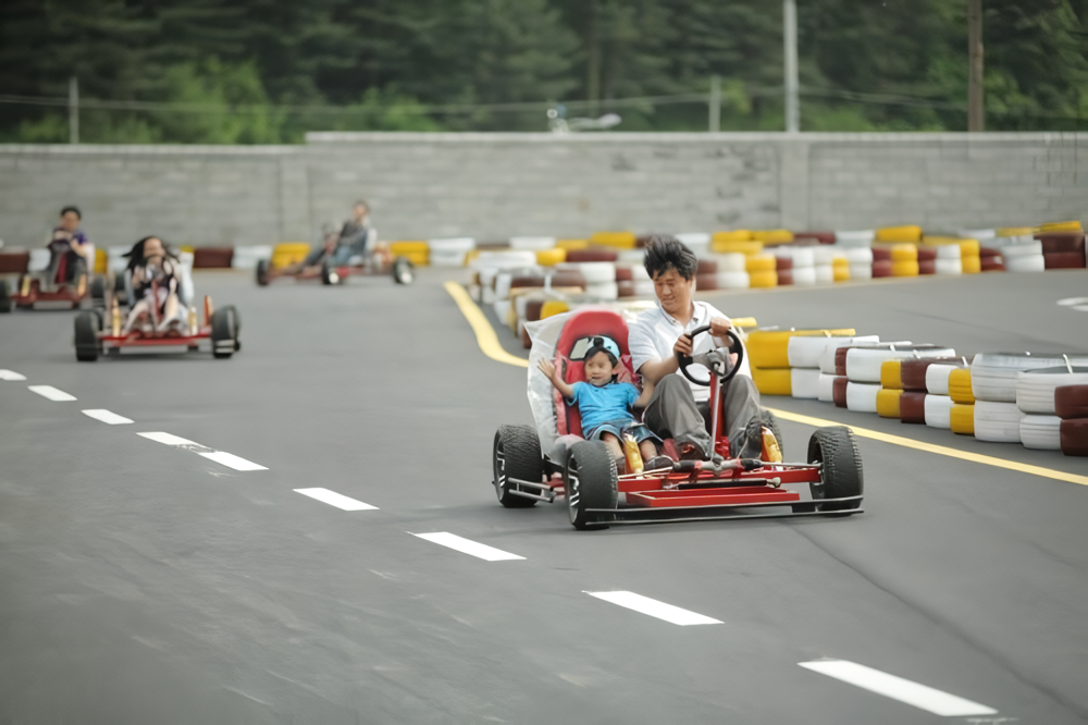처음에는 단순한 카트 체험으로 시작했지만, 시간이 지나면서 점차 코스를 확장하고 다양한 난이도의 카트 코스를 제공하여 누구나 자신에게 맞는 코스를 선택할 수 있게 되었습니다. 현재는 1인승과 2인승 카트가 모두 제공되어, 가족이나 친구들과 함께 방문해도 좋습니다.
