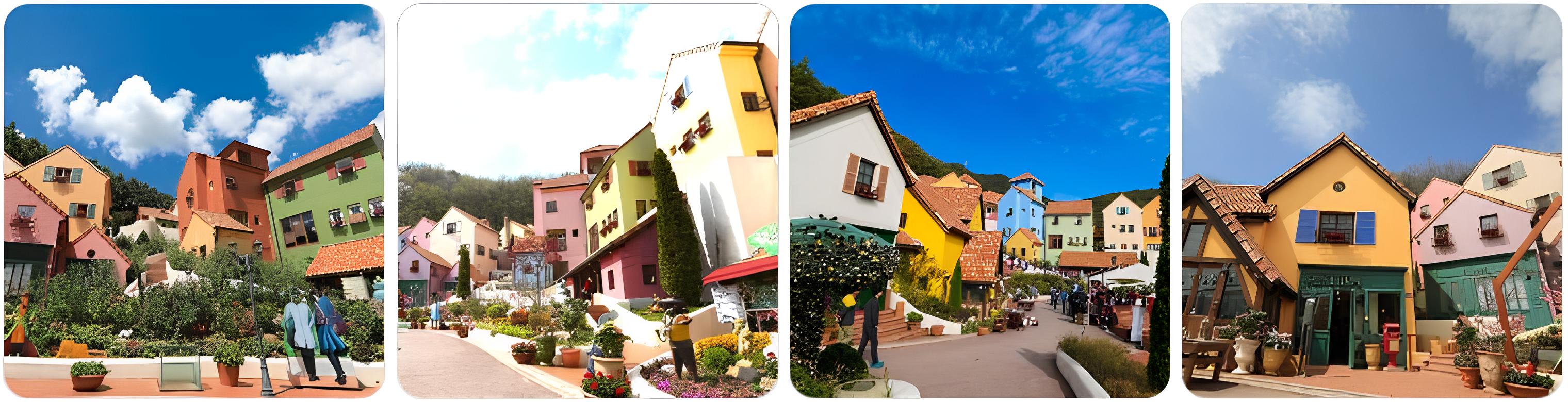 마을 전체가 프랑스의 전통 건축 양식을 재현하여, 마치 프랑스의 작은 마을에 온 듯한 느낌을 줍니다. 각 건물은 프랑스의 지방색과 건축미를 담고 있어 사진 촬영 명소로도 유명합니다.