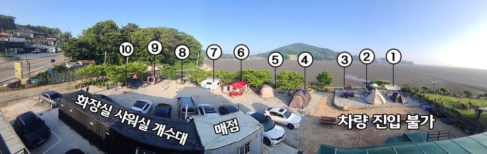 - 포토존: 4번 사이트 앞 갯벌과 산 뷰에서 감성 사진 촬영. 📸
