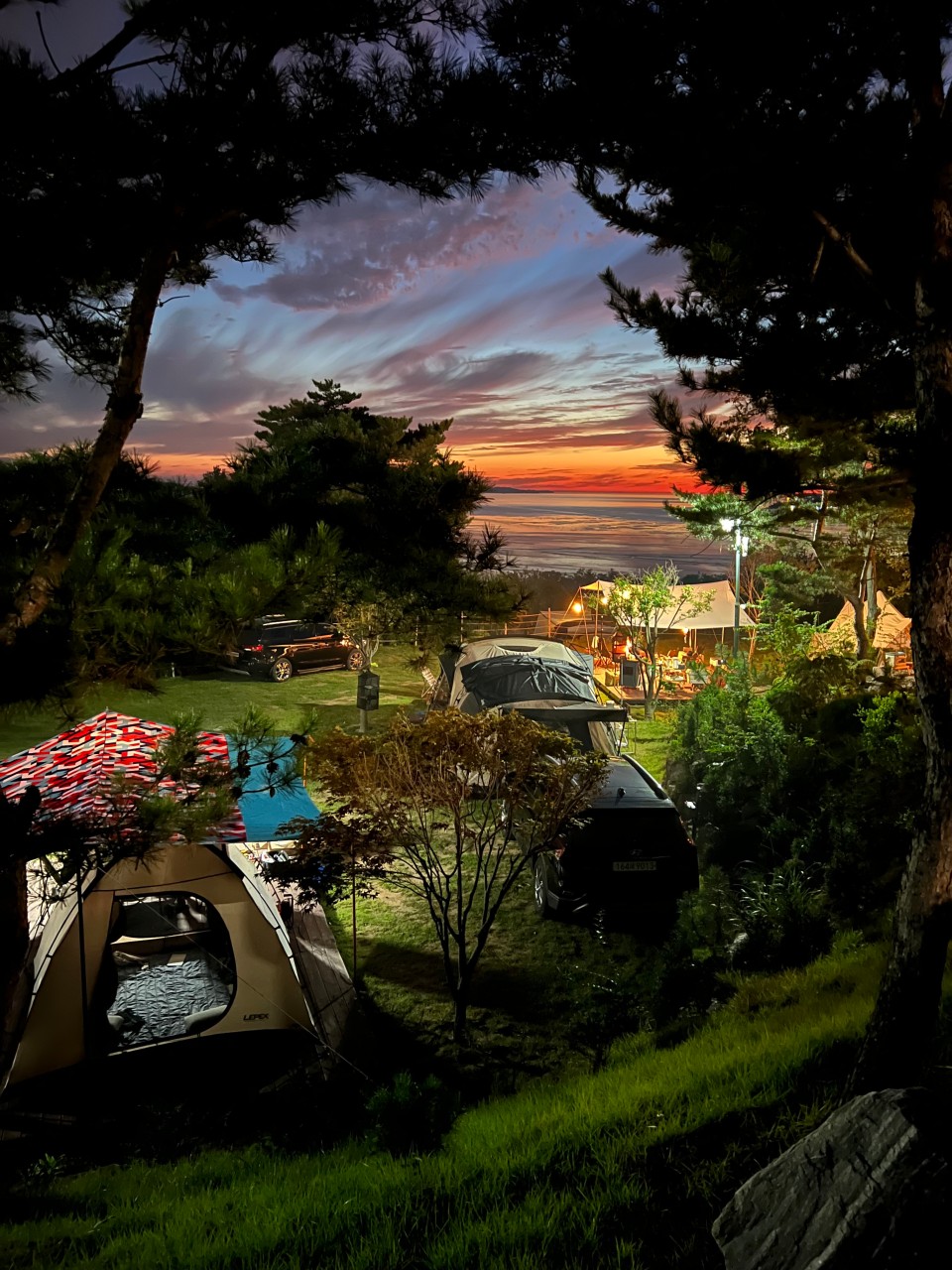 - 노을존 사이트: 바다와 맞닿은 노을 1번 사이트는 탁 트인 뷰로 캠퍼들의 로망! 석양이 지는 풍경은 인생 사진을 남기기에 최고예요. 🌅