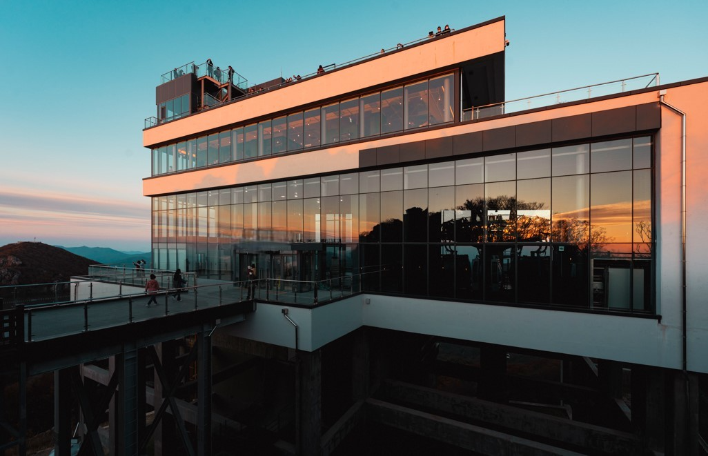 거제파노라마 케이블카는 노자산 정상까지 1.56km 구간을 이동하며, 거제 바다와 섬, 노자산의 푸르른 숲을 한눈에 감상할 수 있습니다. 특히 해 질 무렵에는 환상적인 노을이 펼쳐지는 황홀한 풍경을 만날 수 있어요. 🌅