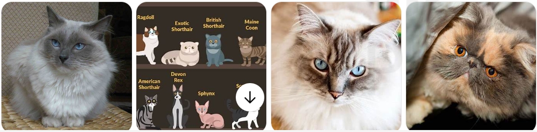 - 장모종: 페르시안, 메인쿤, 랙돌