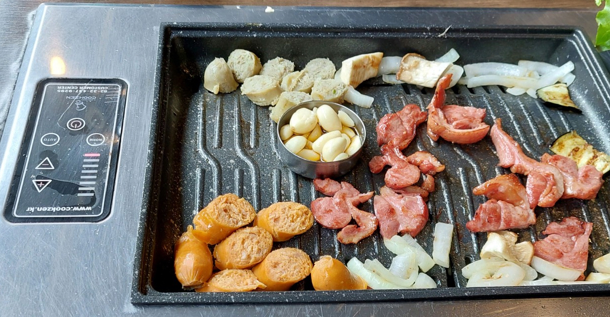 모듬장작한판(4인) 오리훈제, 삼겹살, 돼지왕갈비, 수제소시지, 왕새우, 들깨수제비 포함, 69,000원