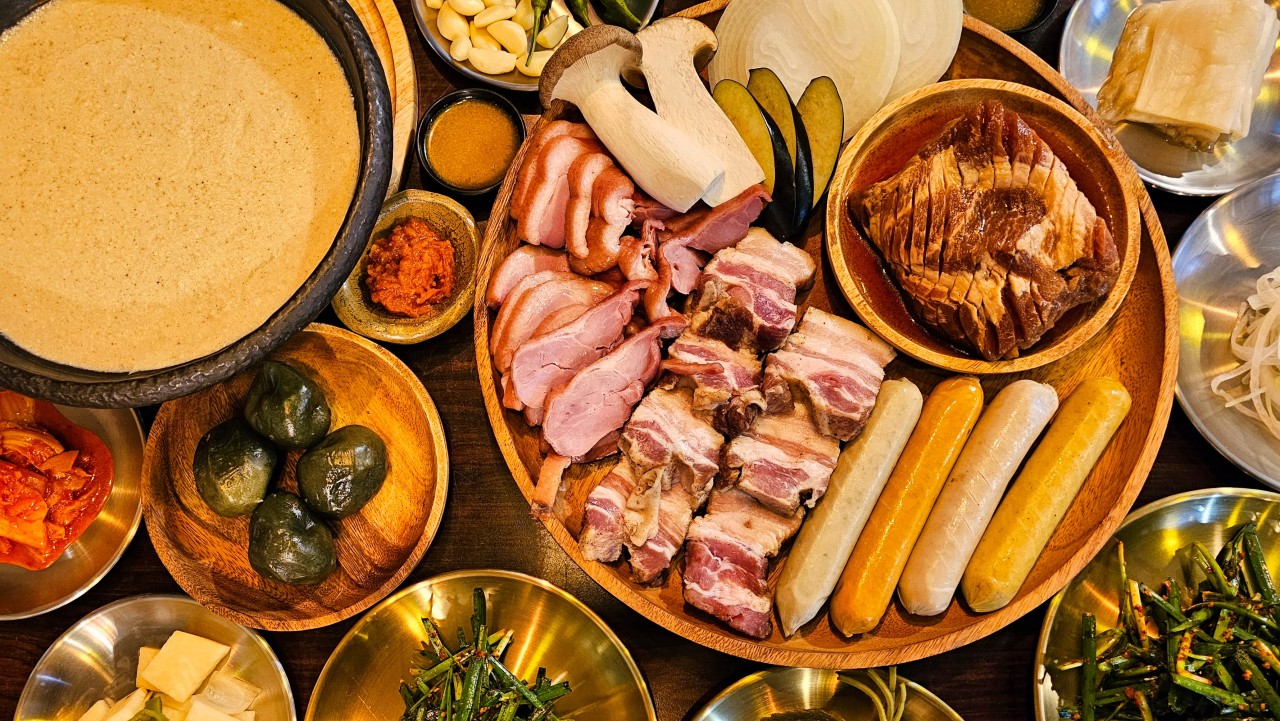 동치미오리국수(12,000원)는 시원한 동치미 육수와 쫄깃한 면발로 여름철 별미로 사랑받는다. 오리국밥(10,000원)은 24시간 우려낸 깊은 육수로 “음식이 맛있어요”(1,318건)라는 리뷰가 이어진다. 셀프바에서 제공되는 겉절이, 볶음김치, 쌈장은 무한 리필로 식사를 더욱 풍성하게 만든다.