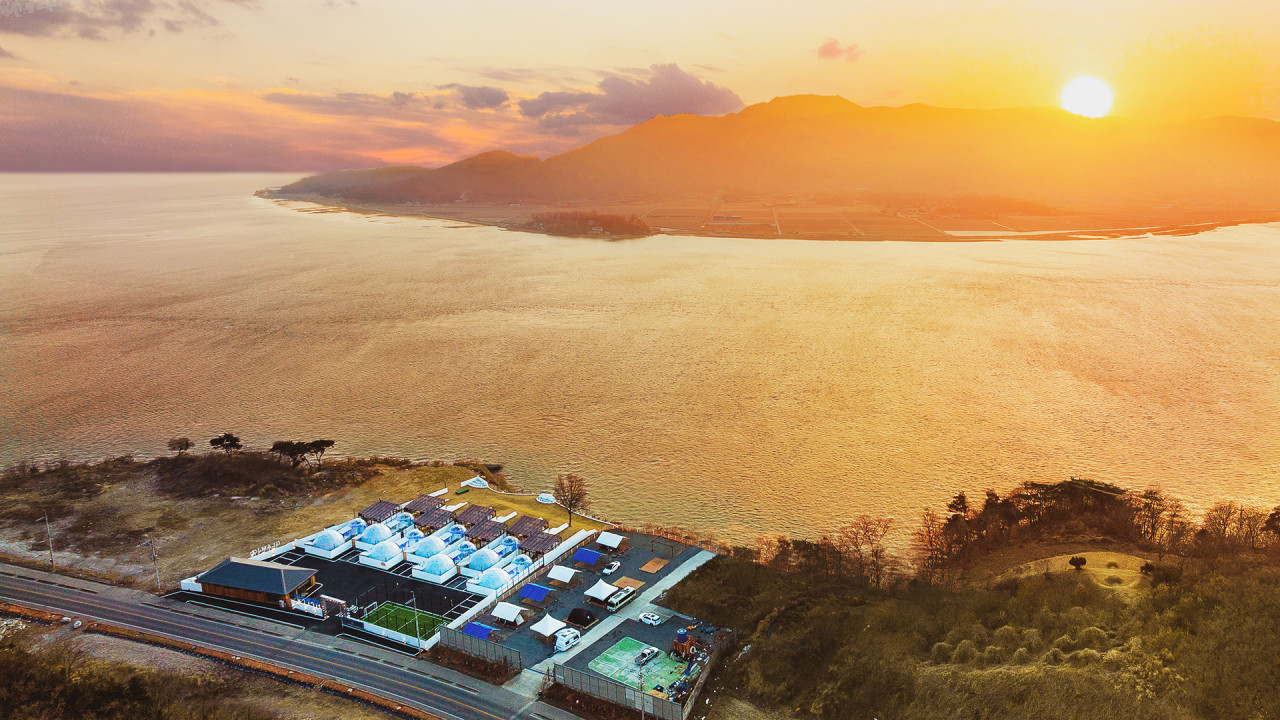 글램조이 풀램핑은 서해 바다를 바라보는 럭셔리 글램핑으로, 7개 독채 유닛(G1~G7)이 모두 개별 온수 수영장과 바비큐장을 갖추고 있습니다. 이글루형 돔 텐트와 연결된 통로, 넓은 침실(더블 침대 2개), 개별 화장실 및 샤워실은 호텔급 편의를 제공하죠. 갯벌 체험, 족구장, 잔디광장은 가족 단위 방문객에게 큰 즐거움을 선사하며, 와이파이와 세미나실은 단체 모임에도 적합해요. 바다 앞 캠프파이어와 온수풀은 계절에 상관없이 힐링을 보장합니다. 🌿