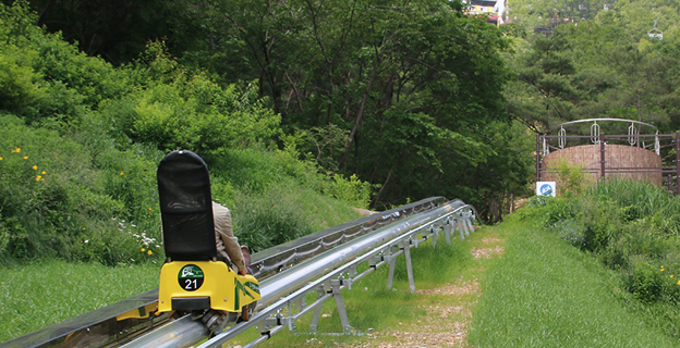 960m 레일을 따라 달리는 알파인코스터는 짚와이어와 함께 테마파크의 대표적인 스릴 시설입니다. 카트를 타고 산비탈을 내려오는 듯한 느낌을 주는 이 시설은 안전하면서도 짜릿한 경험을 제공합니다.