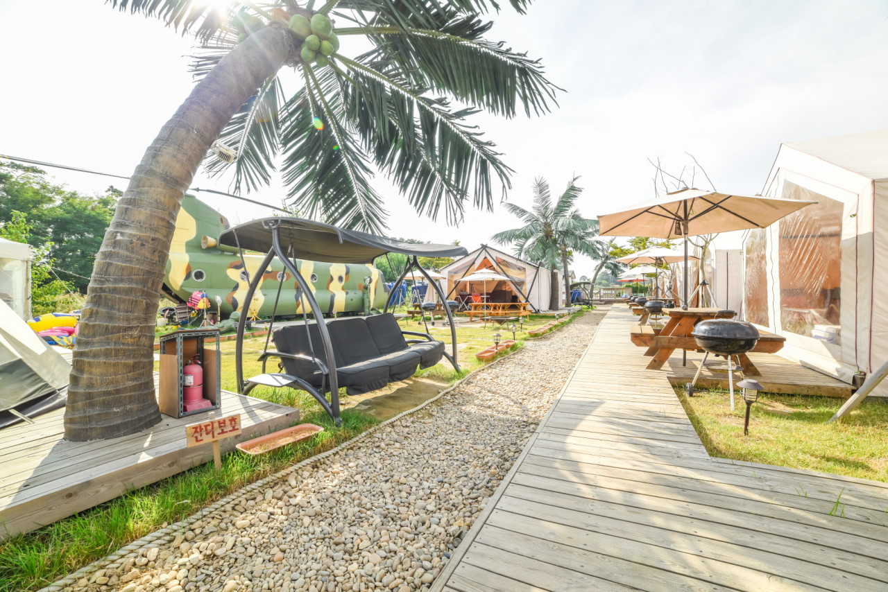 대부도캠핑성은 글램핑과 오토캠핑을 결합한 프리미엄 캠핑장으로, 바닷가와 가까운 위치에서 자연과 편의를 동시에 누릴 수 있습니다. 야자수로 장식된 이국적인 분위기와 온수 수영장, 워터슬라이드, 트램펄린 등 아이들을 위한 놀이 시설이 풍부해 가족 여행에 최적입니다.
