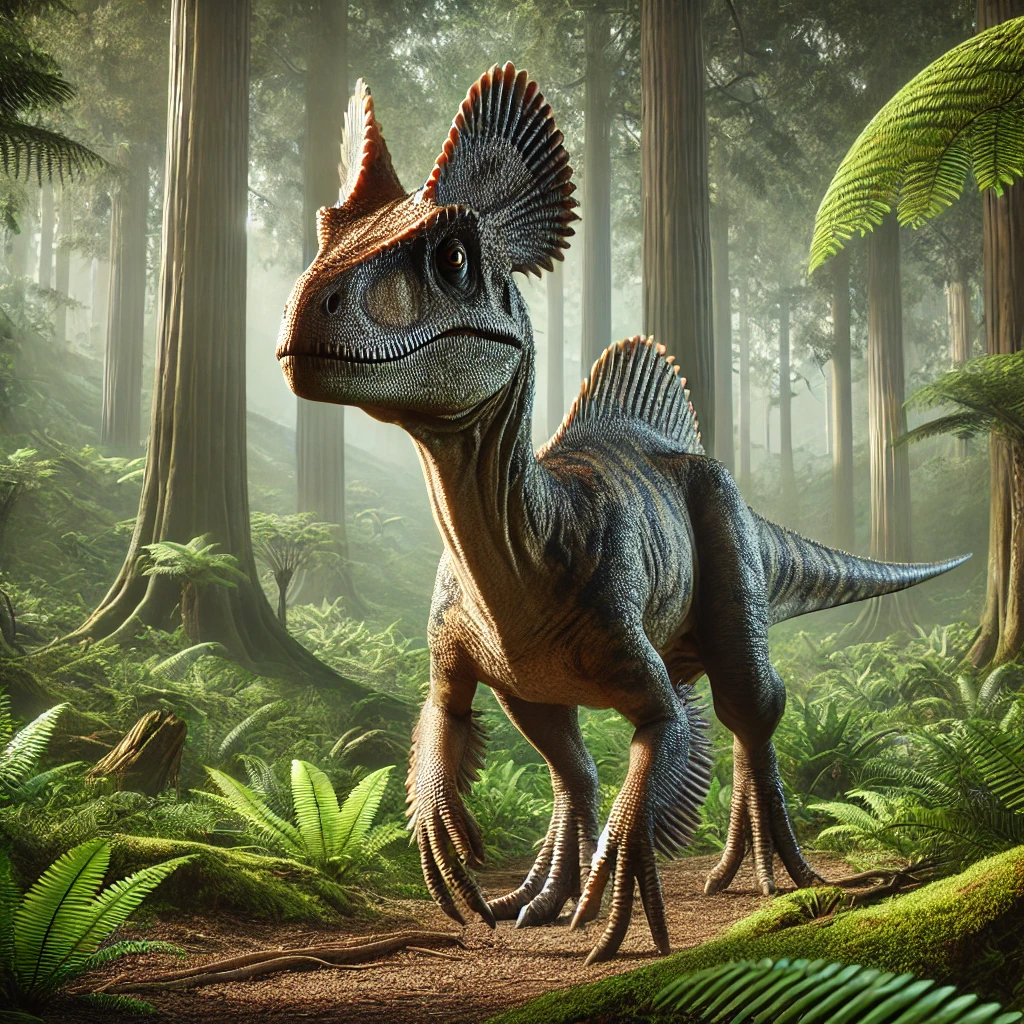 딜로포사우루스(Dilophosaurus)는 중생대 쥐라기 초기(약 1억 9,300만 년 전)에 서식했던 수각류 공룡으로, 독특한 머리 장식과 빠른 속도로 유명합니다. 이 공룡의 이름은 "두 개의 볏을 가진 도마뱀"이라는 뜻을 지니며, 두개골 위에 있는 두 개의 뚜렷한 볏이 그 이름의 유래가 되었습니다. 딜로포사우루스는 영화나 대중매체에서 독이 있는 공룡으로 묘사되었지만, 실제로는 독을 사용했다는 증거는 없습니다.