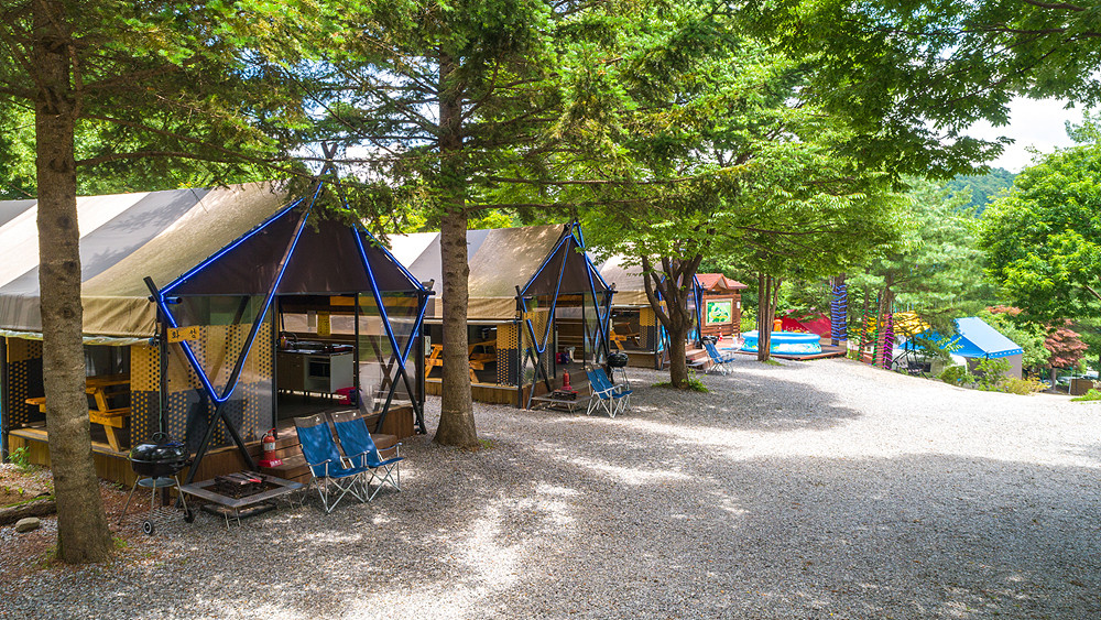 1. 계곡과의 근접성: 글램핑장 뒤로 흐르는 맑은 계곡은 여름철 물놀이와 시원한 휴식을 제공합니다. 계곡 소리를 들으며 시간을 보내는 것만으로도 힐링이 됩니다.