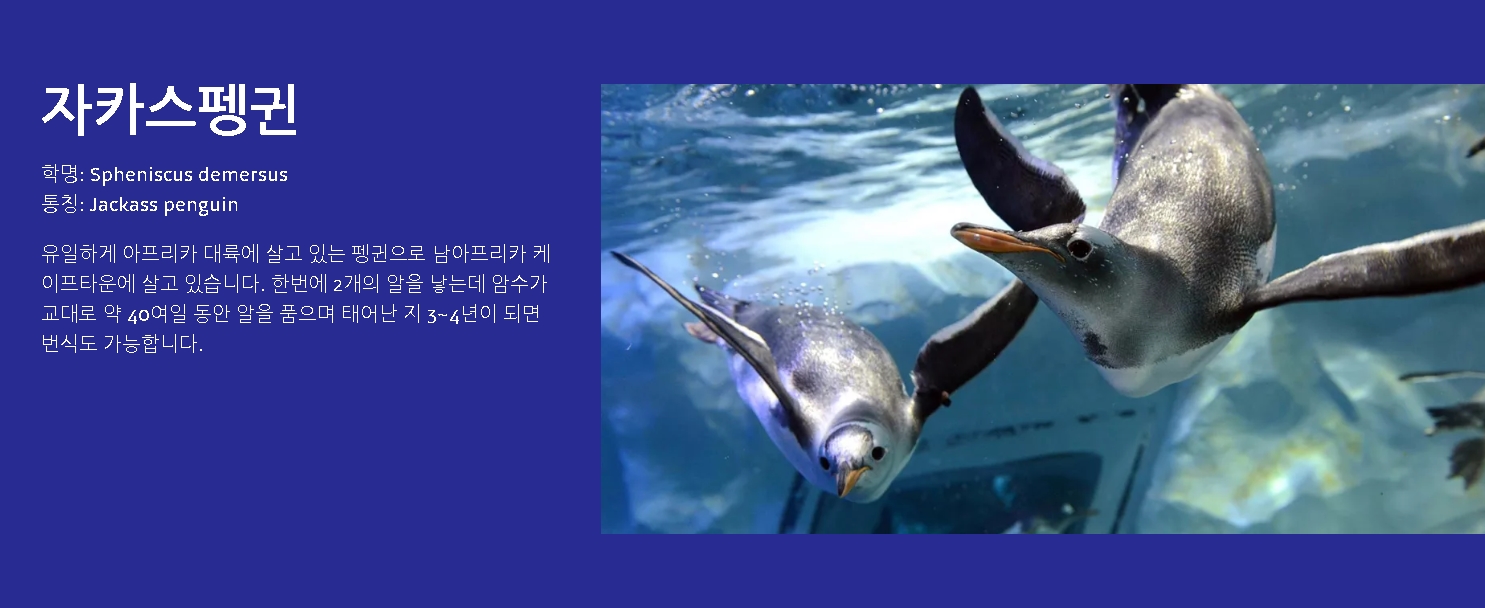 귀여운 남극 펭귄들이 헤엄치는 모습을 가까이에서 볼 수 있습니다. 펭귄들의 먹이 주기 시간에는 깜찍한 행동과 재롱을 볼 수 있어 인기가 많습니다.