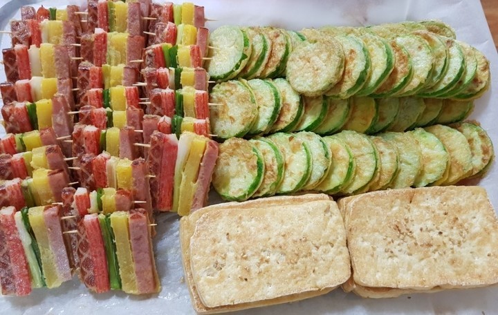 - 전: 다양한 재료를 얇게 썰어 부친 음식으로, 동그랑땡, 생선전, 채소전 등이 있습니다.
