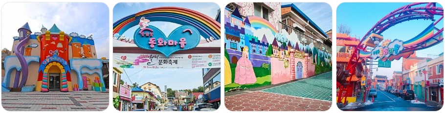 2. 11개 테마 골목길: 오즈의 마법사 도로시의 길, 전래동화길, 동물나라길, 동화 속 사계절길 등 다양한 테마로 꾸며진 골목길들이 있습니다. 각 골목마다 동화 속 주인공들의 입체적인 조형물과 벽화가 있어 생동감 넘치는 포토존을 제공합니다.