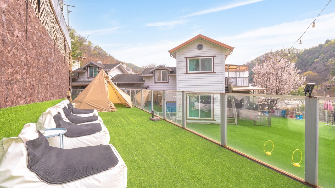 - 특징: 객실 테라스 앞에 단독으로 설치된 애견 펜스(10평)가 있어 소형견뿐만 아니라 대형견도 마음껏 뛰어놀 수 있습니다. 계곡 앞에 위치하여 시원한 계곡 캠핑을 즐길 수 있으며, 객실 앞에는 단독 바베큐장이 설치되어 있어 반려견과 함께 물놀이와 바베큐 파티를 즐길 수 있습니다.