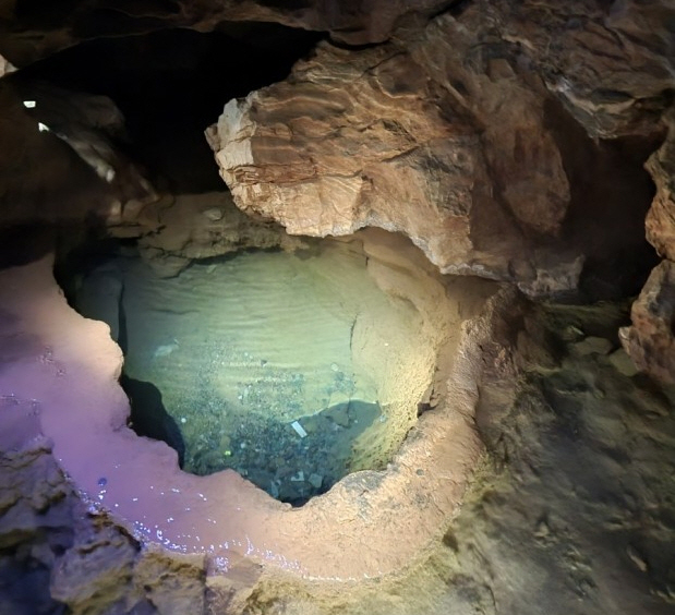 - 하층에는 작은 하천처럼 흐르는 지하수가 있어 수평굴 형태를 띠고 있습니다.
