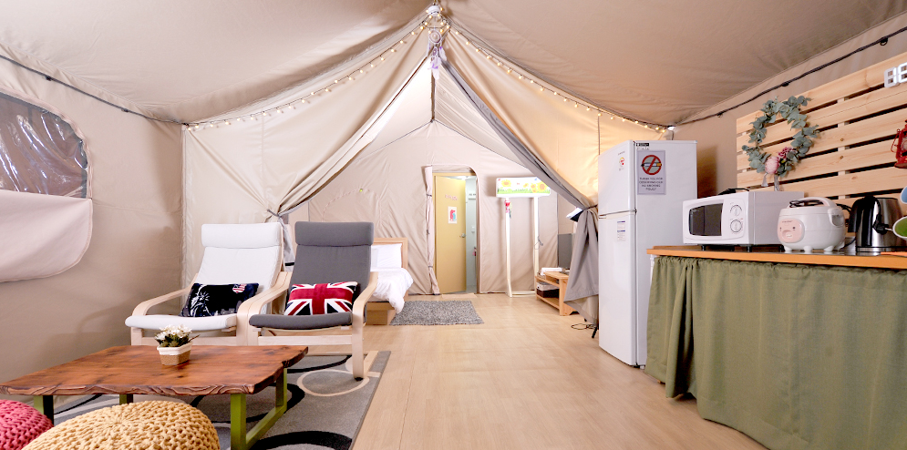 오크힐 글램핑캠핑장은 12개의 글램핑 텐트(A타입, C타입)로 이루어진 자연의 오아시스입니다. 각 텐트는 2~6인용으로, 온돌 바닥, 전기장판, 침대, 전용 화장실, 개수대, 주방(냉장고, 전자레인지, 밥솥, 포트)을 갖추고 있어요. 에어컨, 온풍기, 드라이기, 샴푸, 치약까지 세심하게 준비된 시설은 캠핑의 문턱을 낮춥니다. 무료 바비큐장과 트램펄린, 사계절 썰매장은 가족의 웃음을 피워내고, 여름 수영장은 생기를 더하죠. 단, 트램펄린 근처 텐트는 약간 시끄러울 수 있고, 수영장은 겨울엔 운영되지 않아요. 사장님의 꼼꼼한 관리와 친절은 오크힐의 따뜻한 심장이에요.