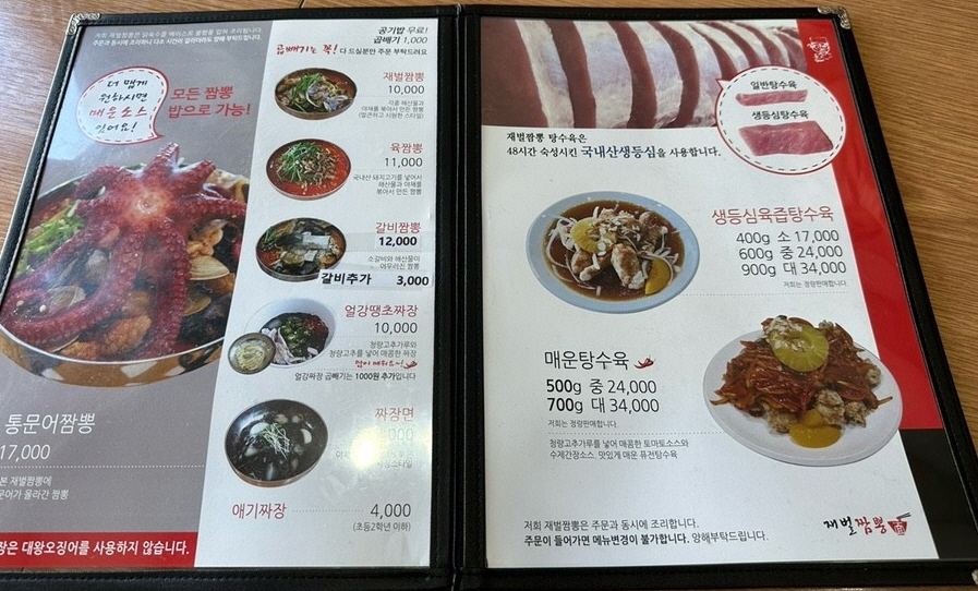 | 재벌짬뽕 | 불향 가득, 해산물 듬뿍, 공기밥 무료, 10,000원 |