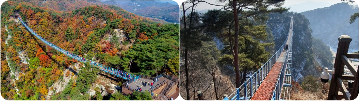 • 발아래로 보이는 깊은 계곡과 주변의 웅장한 산세가 어우러져 독특한 경험을 선사합니다.