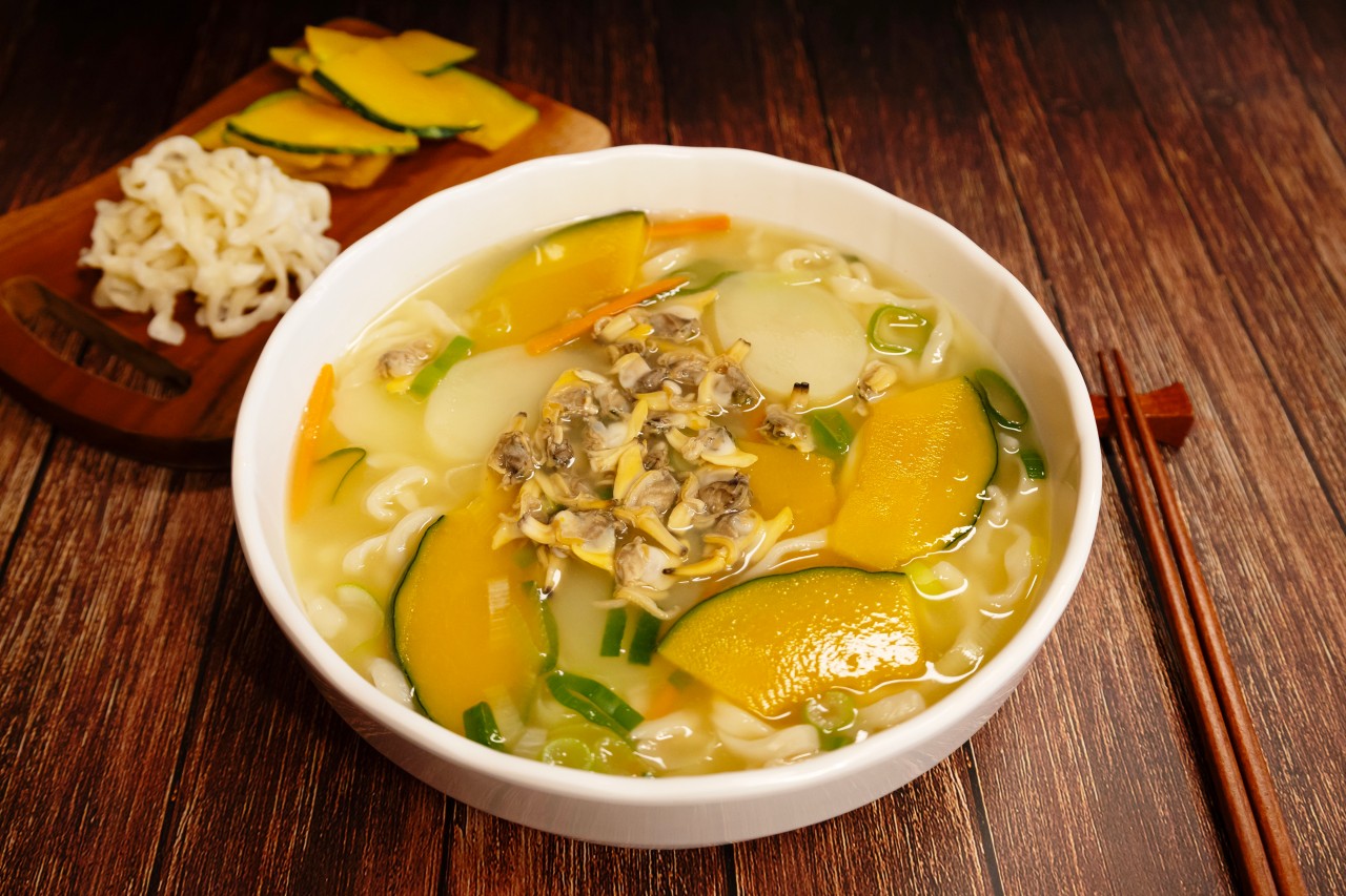 껍질을 모두 제거한 바지락이 듬뿍 들어가 국물이 깔끔하고 먹기 편합니다. 단호박의 달큰함이 더해져 남녀노소 모두 좋아하는 맛입니다.