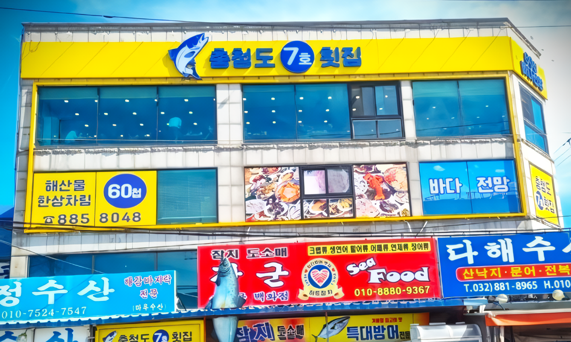 충청도7호생선회는 신선한 해산물과 60첩 반상의 화려함, 그리고 연안부두의 아름다운 뷰가 어우러진 특별한 맛집입니다.