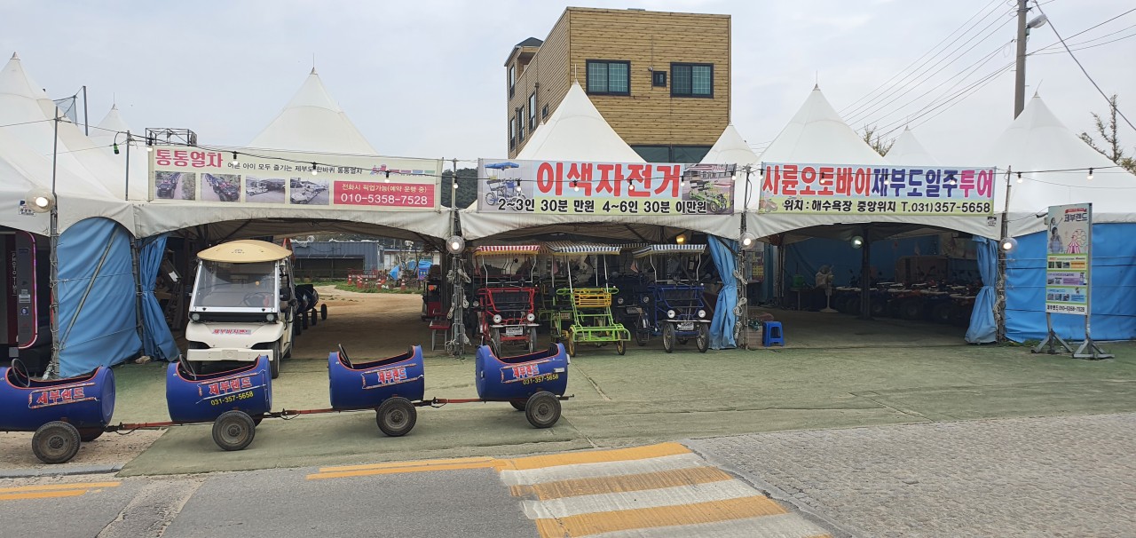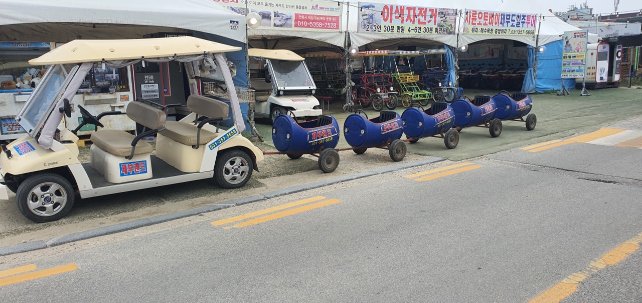 통통열차, ATV, 이색자전거로 제부도 해안도로를 달리며 바다 풍경을 만끽할 수 있습니다. 특히 통통열차는 S자 코스와 바닷길을 달리며 아이와 어른 모두에게 인기입니다.