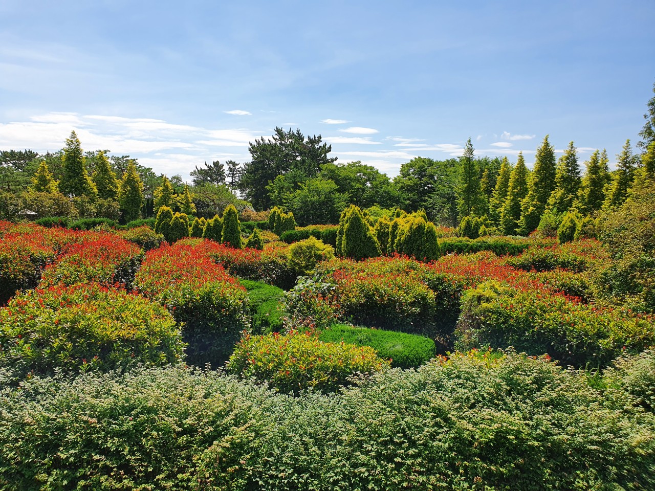 홍가시원(성인 입장료 12,000원)은 붉은 홍가시나무와 수선화가 어우러진 청산수목원의 보석 같은 공간입니다. 햇살 아래 반짝이는 붉은 잎사귀는 사진작가와 연인들의 마음을 훔치며, 산책로의 부드러운 곡선은 고요한 사색을 선사하죠. 아이들과 동물 체험 후 이곳에서 여유를 만끽하세요. 봄의 색채를 느끼고 싶다면, 홍가시원을 놓치지 마세요!