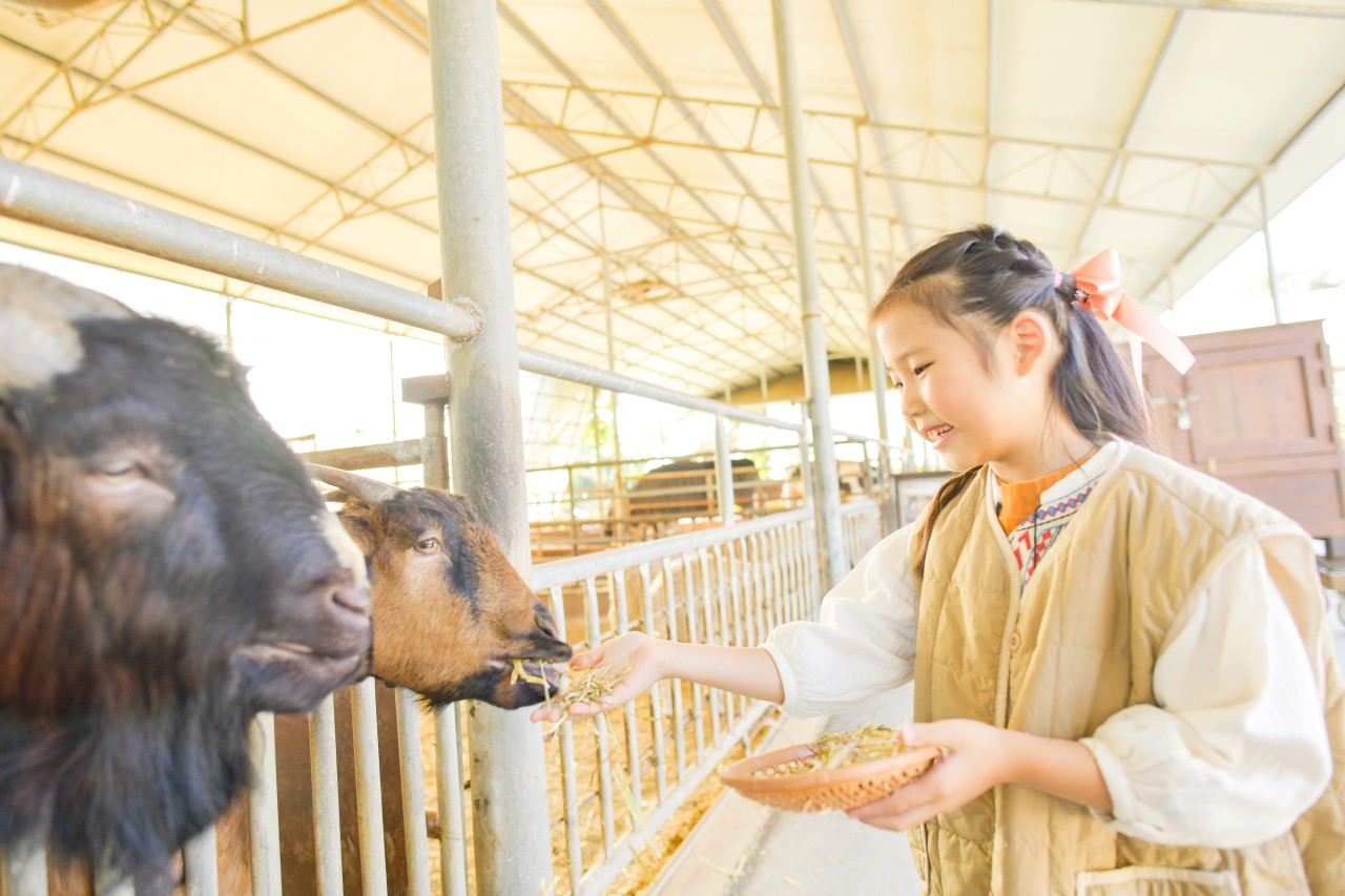 소, 타조, 토끼 등과 교감하며 낙농체험, 승마체험, 아이스크림 만들기 가능. - 넓은 산책로