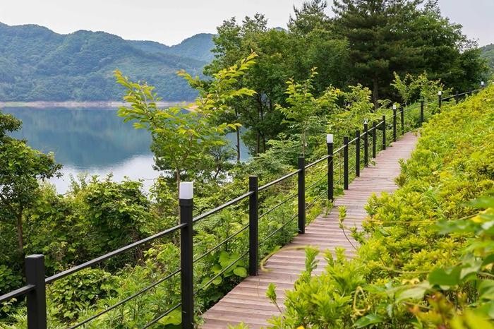 공용 샤워실, 화장실, 개수대 모두 온수와 수압이 잘 나오고, 청결하게 관리되고 있습니다. 매점에서는 생필품, 라면, 음료, 아이스크림, 장작 등 기본 물품을 구입할 수 있습니다. 캠핑장 주변에는 충주호를 따라 산책로가 조성되어 있어 호수와 숲을 동시에 만끽할 수 있습니다.