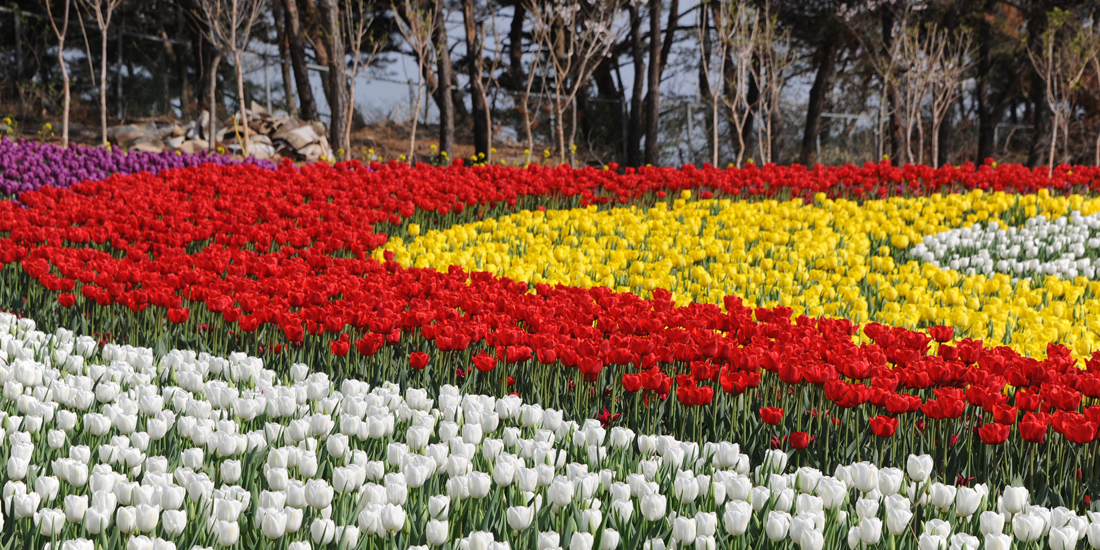 - 1·2·3경: 1경은 튤립의 선을 강조한 화려한 전시, 2경은 소나무와 벚꽃과의 조화, 3경은 ‘고향의 봄’ 악보를 형상화한 독창적인 구역입니다.