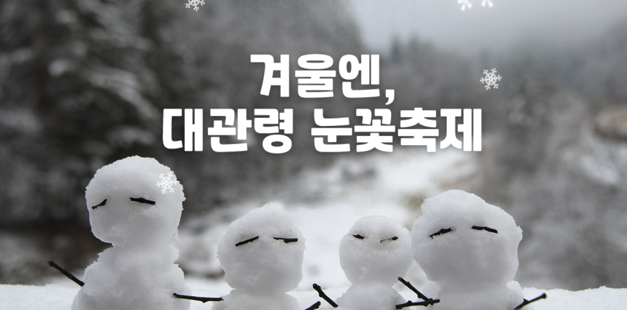 겨울이 선물하는 아름다움을 온전히 느낄 수 있는 평창 대관령눈꽃축제! ⛄❄️ 가족, 연인, 친구와 함께 환상적인 겨울왕국을 경험해보세요. 💙 올겨울, 평창에서 잊지 못할 추억을 만들어 보시길 바랍니다!