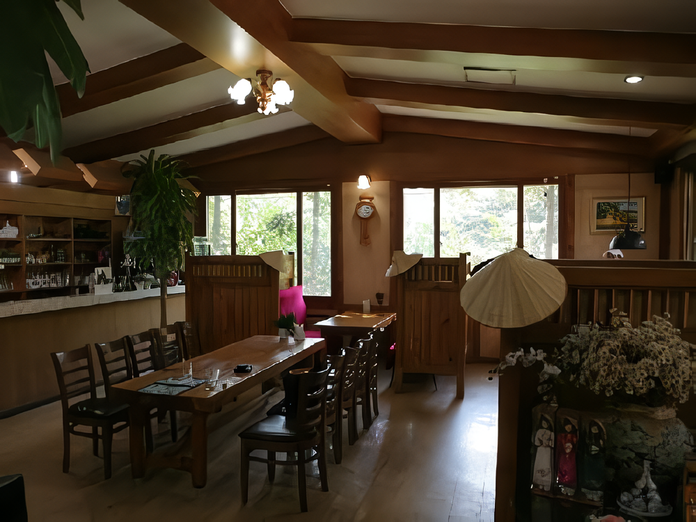 매장은 빈티지한 인테리어와 넓은 창문으로 퇴촌의 초록빛 산뷰를 감상할 수 있다. 메인홀과 단체석 홀로 나뉘어 최대 50명 수용 가능하며, 주차장(20대 이상)과 웨이팅 룸이 완비되어 있다. 테이블링 예약 시스템으로 대기 시간을 줄일 수 있다.