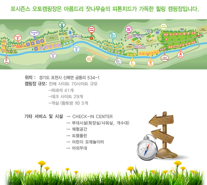 | 주소 | 경기 포천시 신북면 탑신로 1259-68 포시즌스 오토캠핑장 |