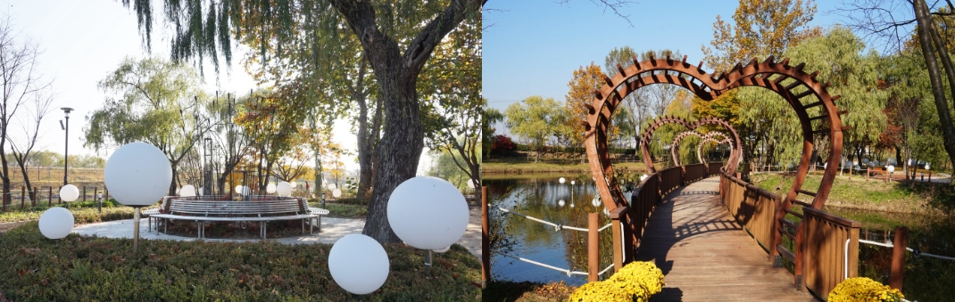 - 수변 산책로: 연못과 테마섬을 둘러싼 수변 데크를 따라 걸으며 아름다운 경관을 감상할 수 있습니다.