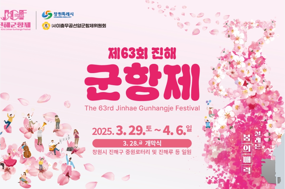 진해 군항제는 매년 봄, 경남 창원시 진해구에서 열리는 대한민국 최대 벚꽃 축제예요. 2025년은 **3월 29일(토)부터 4월 6일(일)**까지 총 9일간 진해구 중원로터리 및 진해루 일대에서 펼쳐질 예정이에요. 약 36만 그루의 왕벚나무가 도시를 뒤덮으며 장관을 이루고, 군악의장 페스티벌, 이충무공 추모 행사 등 다양한 프로그램이 준비돼 있어요. 🎉